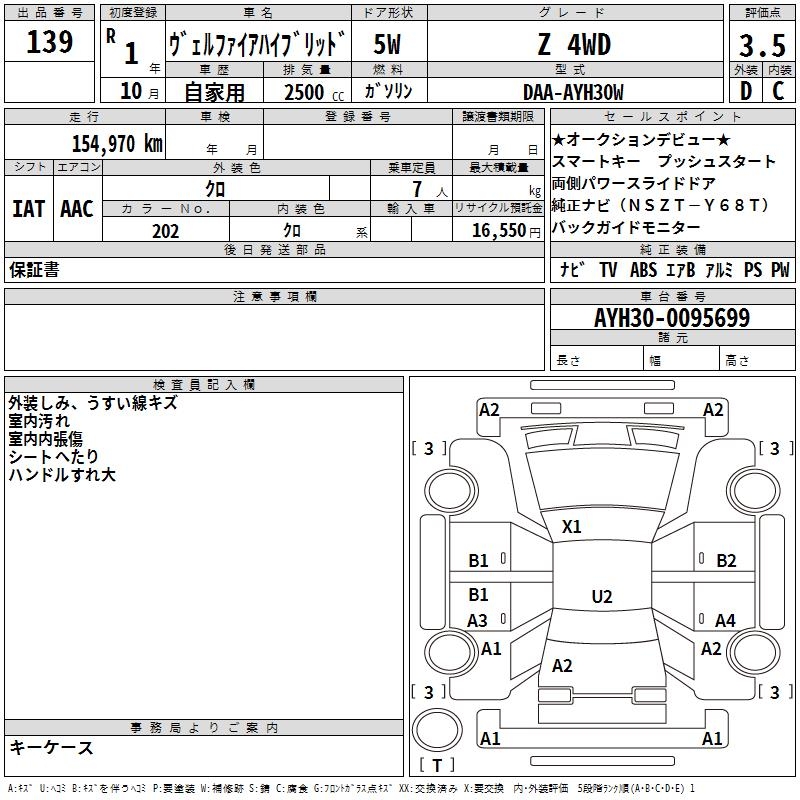 TOYOTA VELLFIRE HYBRID Z 4WD - лот 139