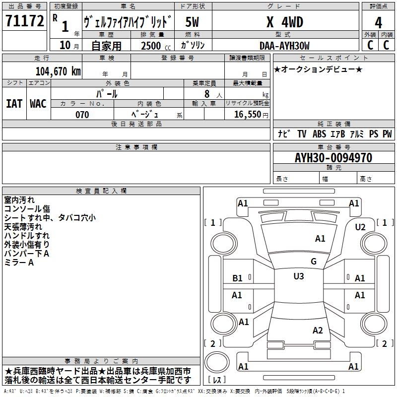 TOYOTA VELLFIRE HYBRID X 4WD - лот 71172