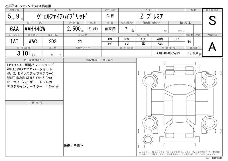 TOYOTA VELLFIRE HYBRID - лот 9100