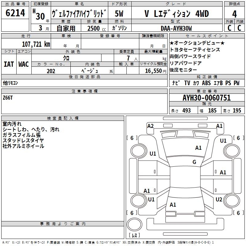 TOYOTA VELLFIRE HYBRID V L EDITION 4WD - лот 6214