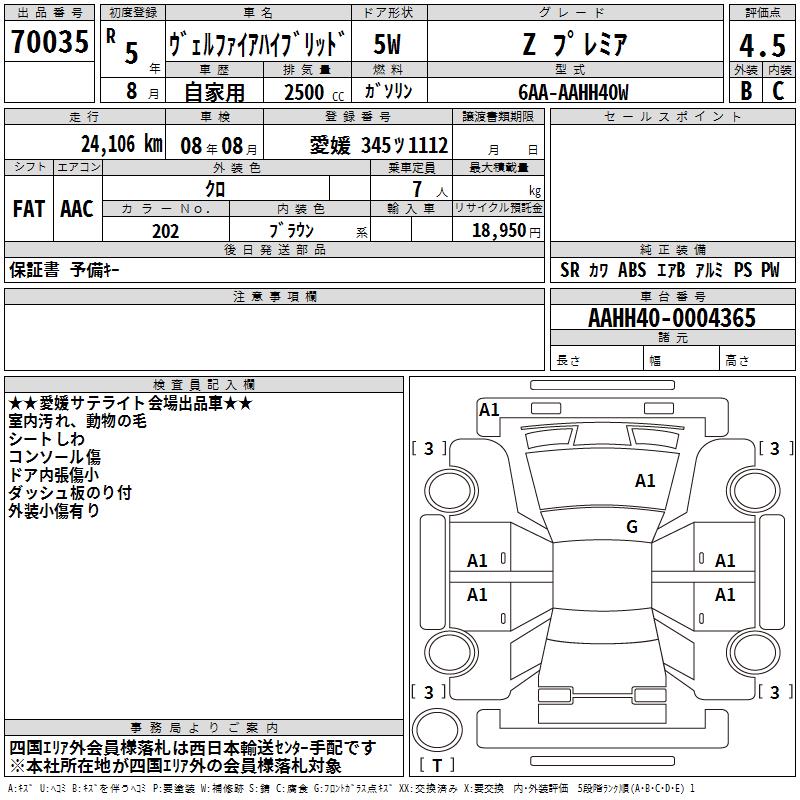 TOYOTA VELLFIRE HYBRID Z PREMIUM - лот 70035