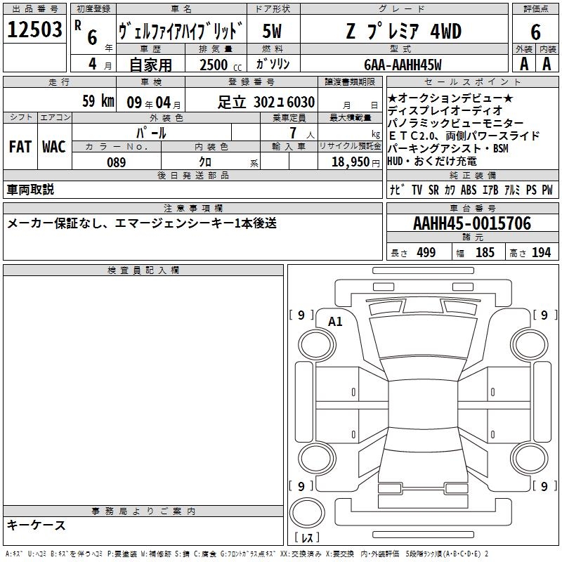TOYOTA VELLFIRE HYBRID Z PREMIUM 4WD - лот 12503