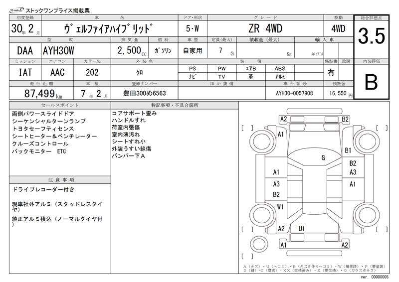 TOYOTA VELLFIRE HYBRID - лот 7179