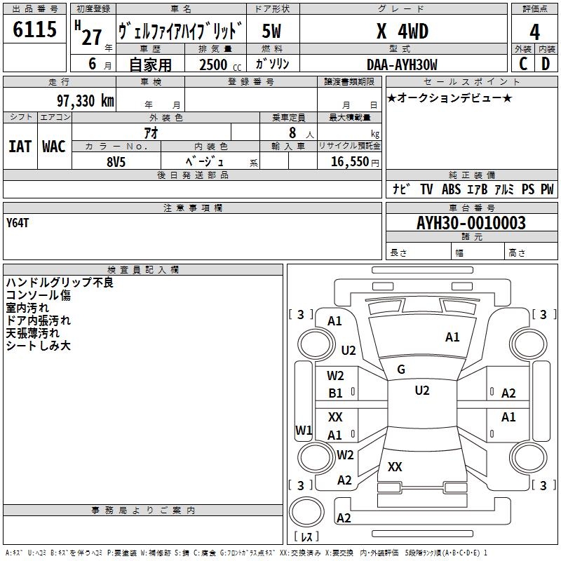 TOYOTA VELLFIRE HYBRID X 4WD - лот 6115