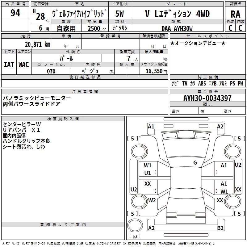 TOYOTA VELLFIRE HYBRID V L EDITION 4WD - лот 94