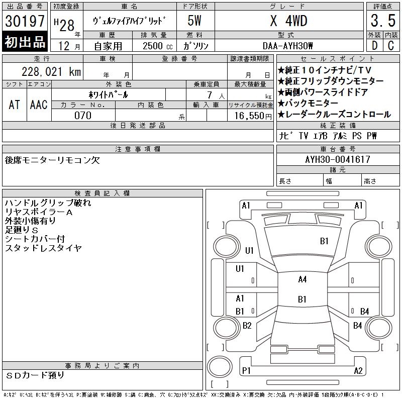 TOYOTA VELLFIRE HYBRID X 4WD - лот 30197