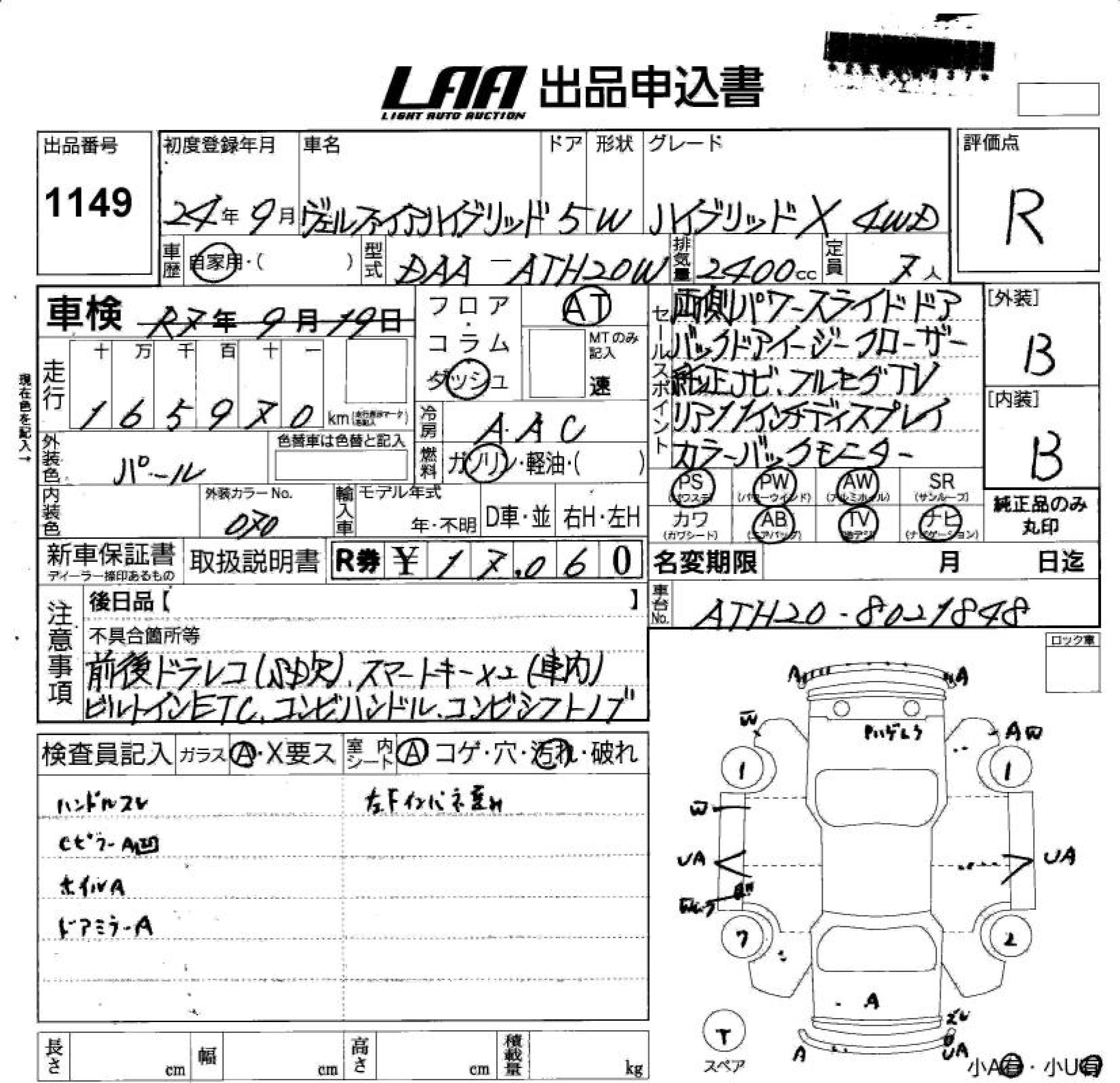 TOYOTA VELLFIRE HYBRID HYBRID X 4WD - лот 1149