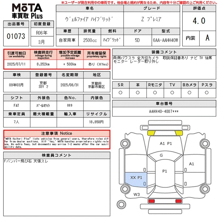 TOYOTA VELLFIRE HYBRID Z PREMIUM - лот 1073
