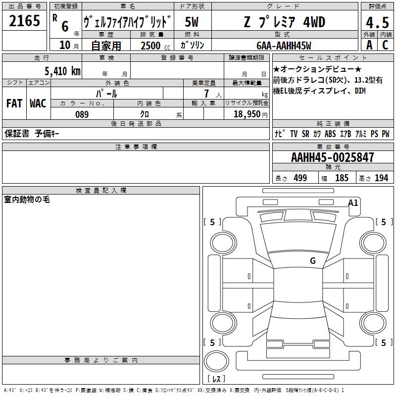 TOYOTA VELLFIRE HYBRID Z PREMIUM 4WD - лот 2165