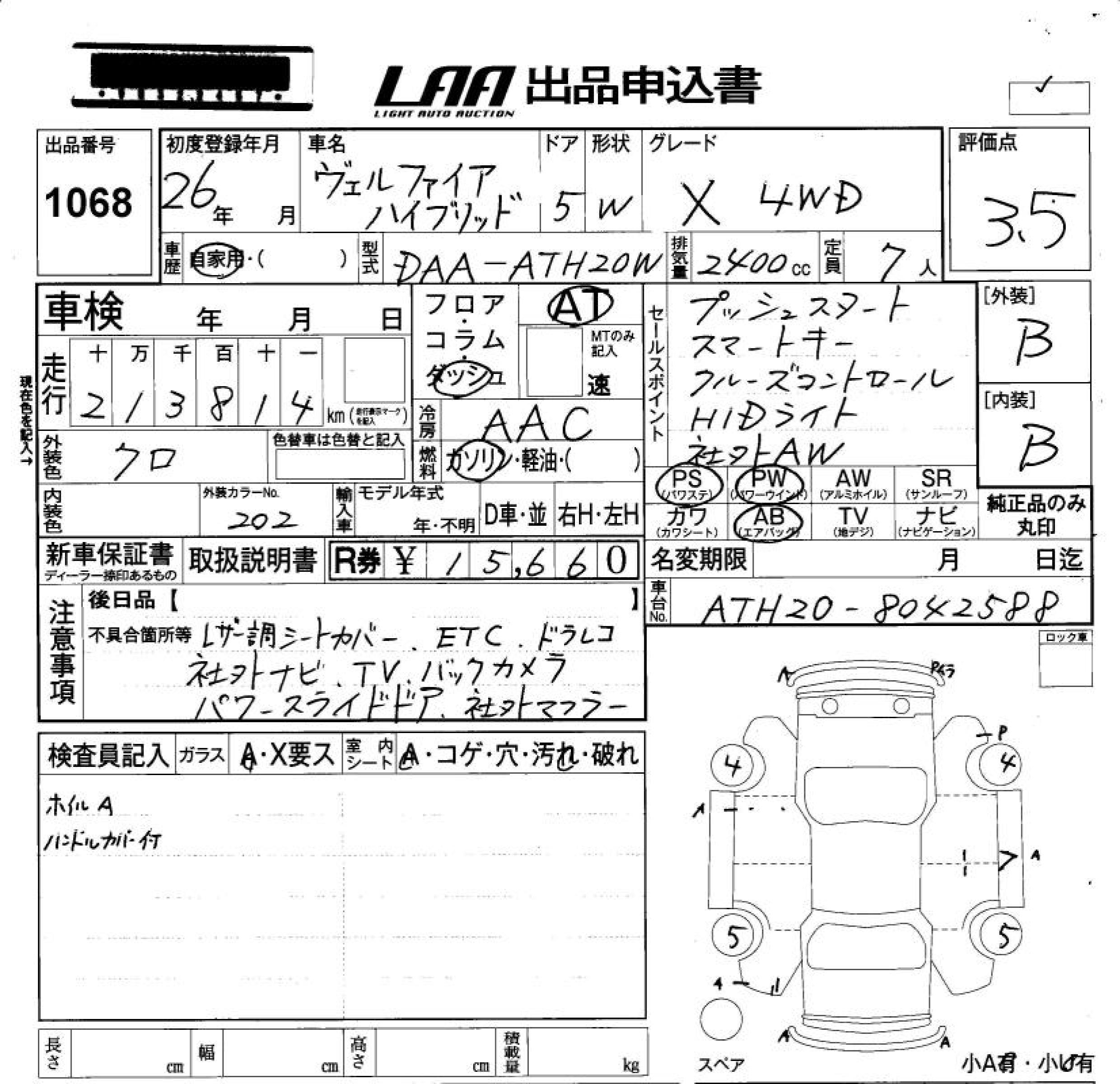 TOYOTA VELLFIRE HYBRID HYBRID X 4WD - лот 1068
