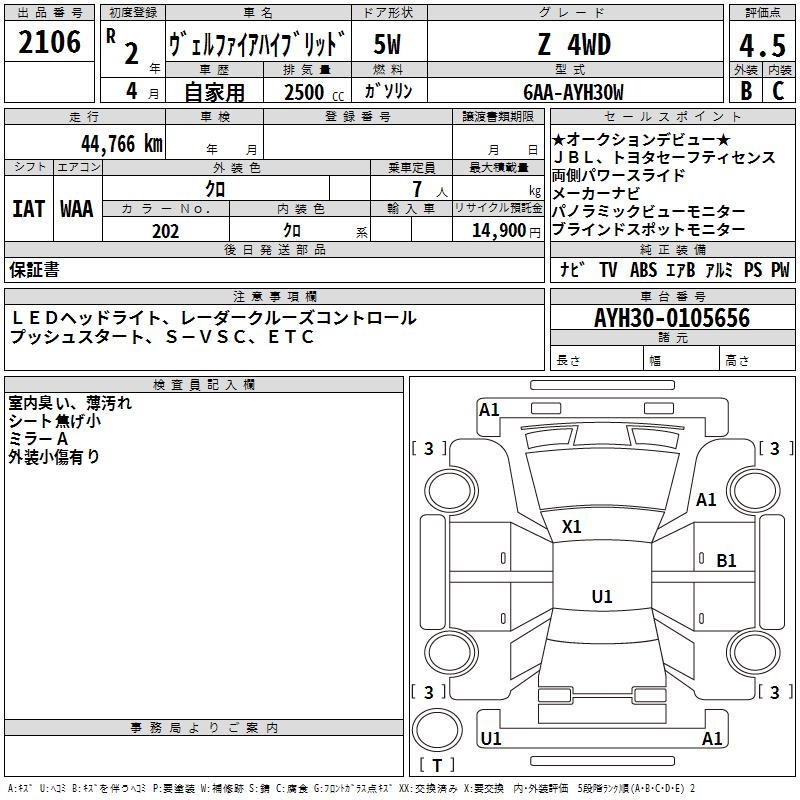 TOYOTA VELLFIRE HYBRID Z 4WD - лот 2106