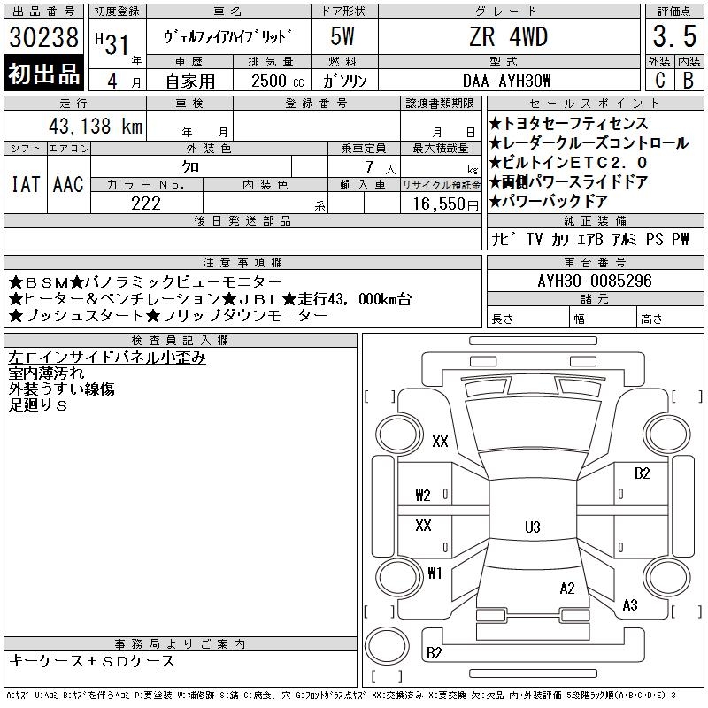 TOYOTA VELLFIRE HYBRID ZR 4WD - лот 30238