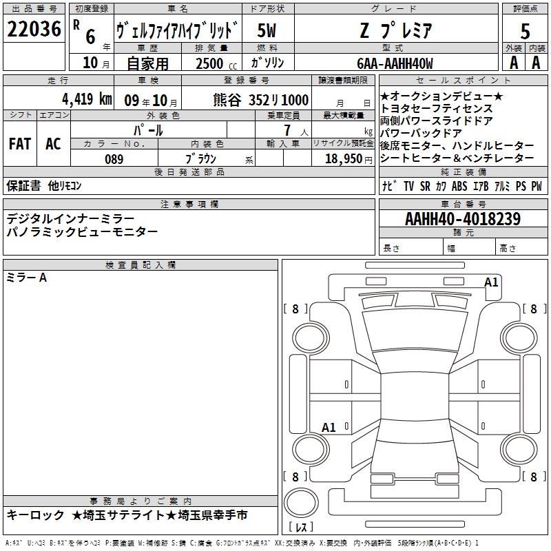 TOYOTA VELLFIRE HYBRID Z PREMIUM - лот 22036