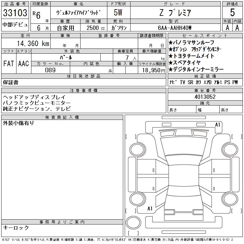 TOYOTA VELLFIRE HYBRID Z PREMIUM - лот 33103