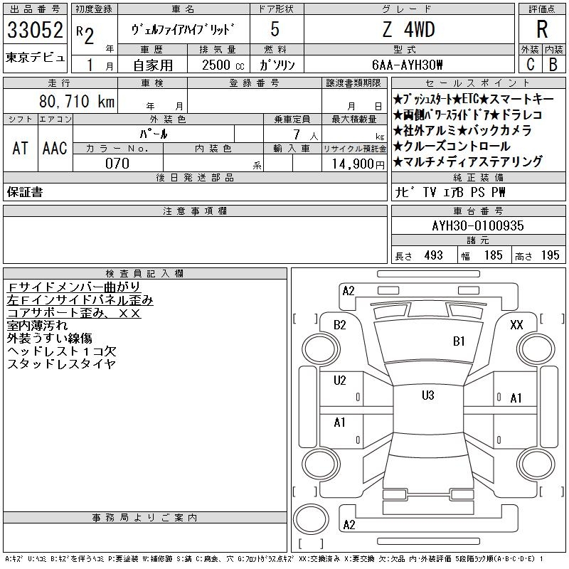 TOYOTA VELLFIRE HYBRID Z 4WD - лот 33052
