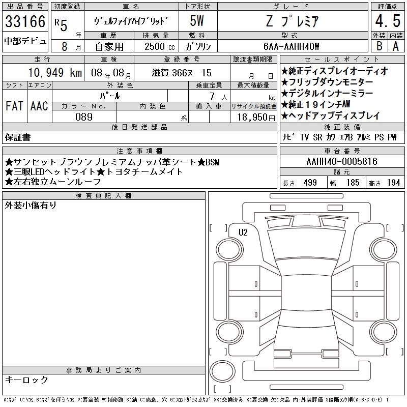 TOYOTA VELLFIRE HYBRID Z PREMIUM - лот 33166
