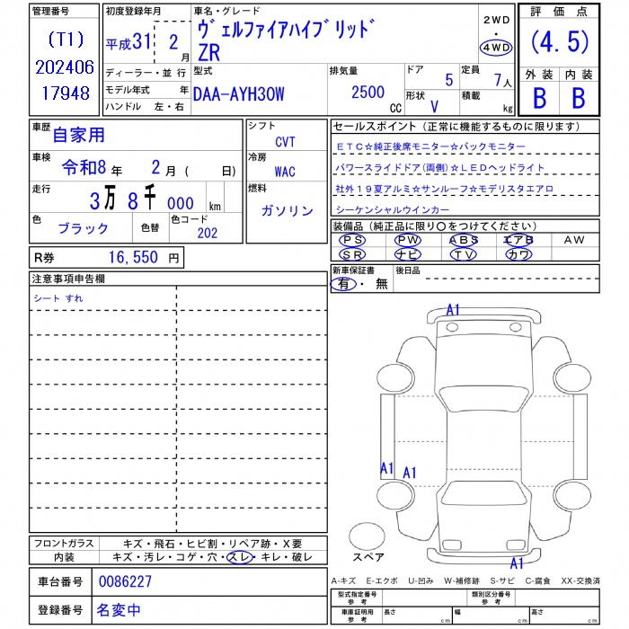 Все аукционы TOYOTA VELLFIRE HYBRID