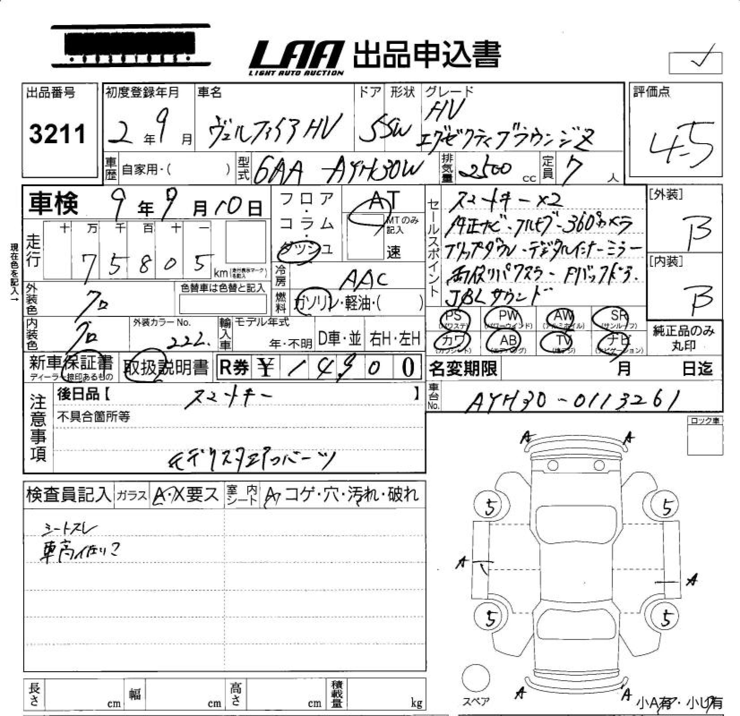 TOYOTA VELLFIRE HYBRID HYBRID EXECUTIVE LA - лот 3211