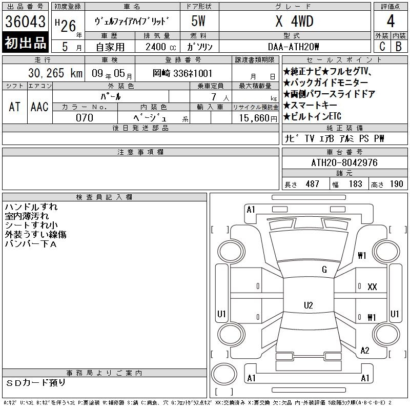 TOYOTA VELLFIRE HYBRID X 4WD - лот 36043