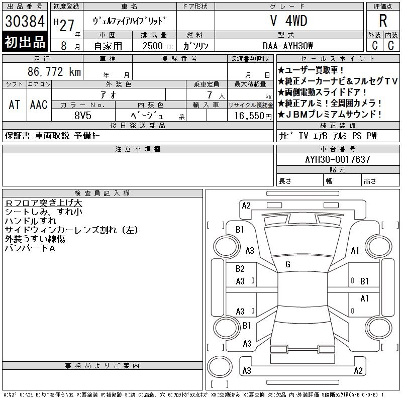 TOYOTA VELLFIRE HYBRID V 4WD - лот 30384