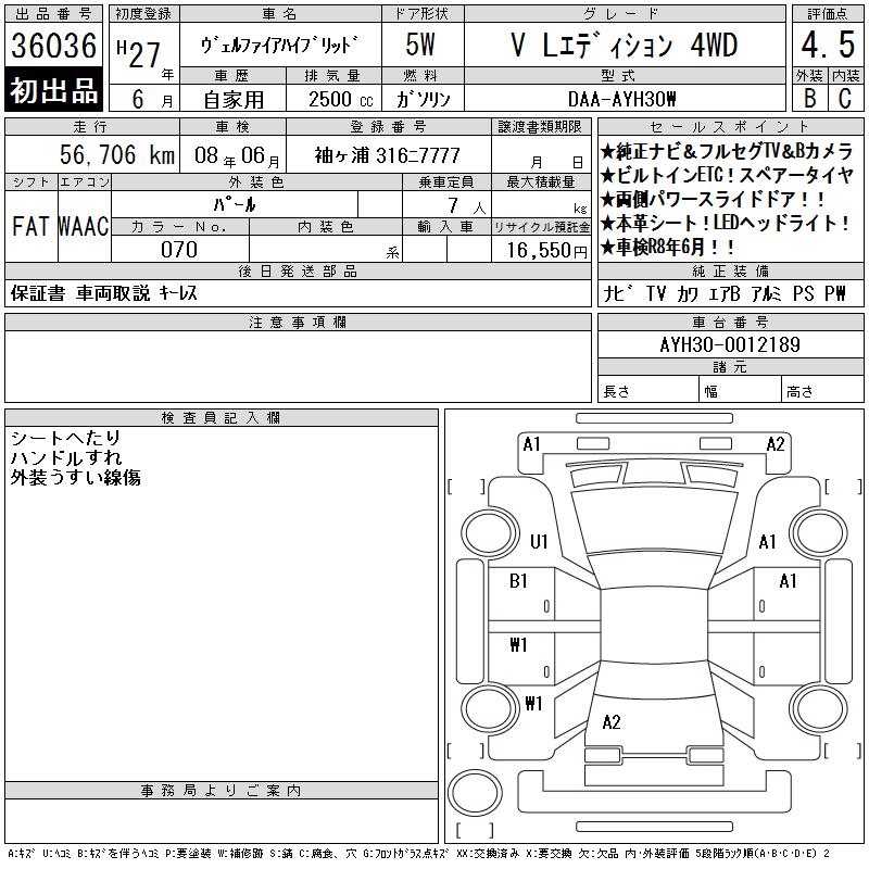 TOYOTA VELLFIRE HYBRID V L EDITION 4WD - лот 36036