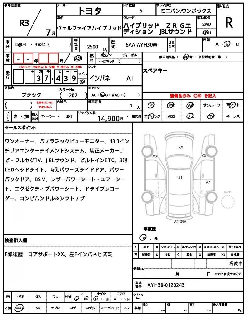 Все аукционы TOYOTA VELLFIRE HYBRID