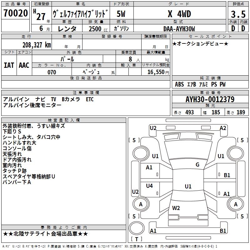 TOYOTA VELLFIRE HYBRID - лот 70020