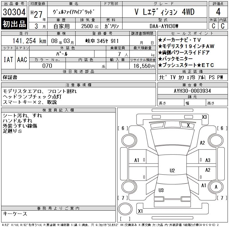 TOYOTA VELLFIRE HYBRID - лот 30304