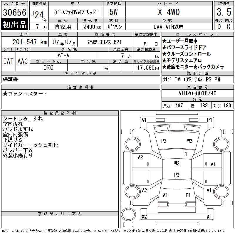 TOYOTA VELLFIRE HYBRID - лот 30656