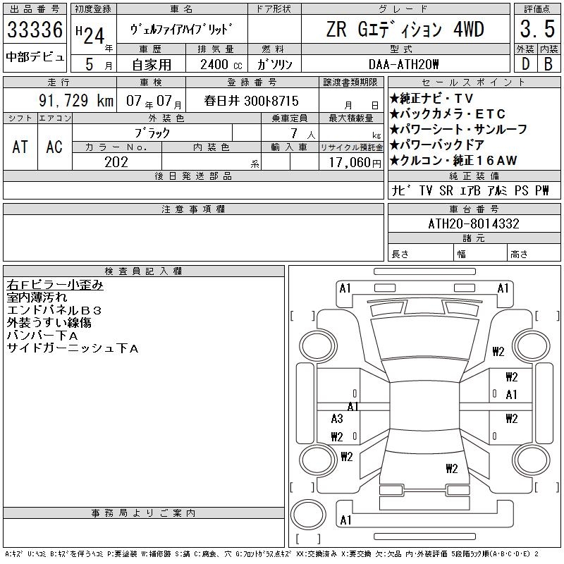 TOYOTA VELLFIRE HYBRID - лот 33336