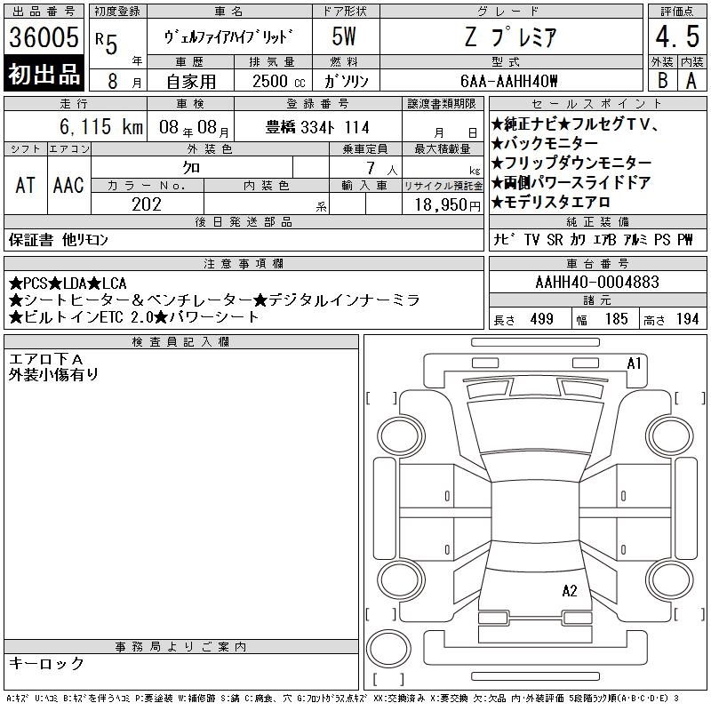 TOYOTA VELLFIRE HYBRID - лот 36005