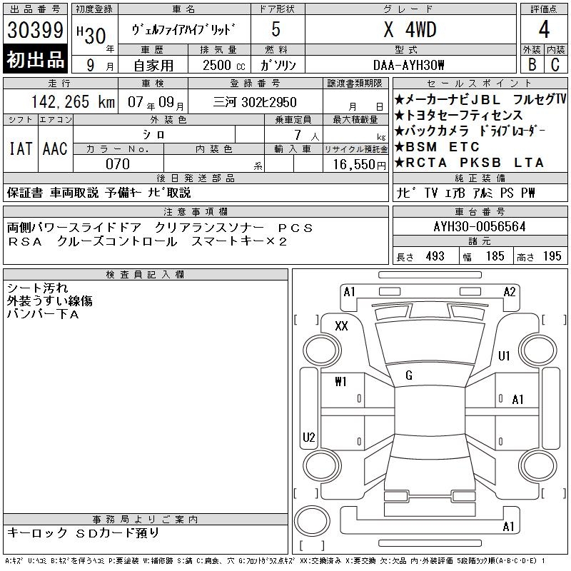 TOYOTA VELLFIRE HYBRID - лот 30399