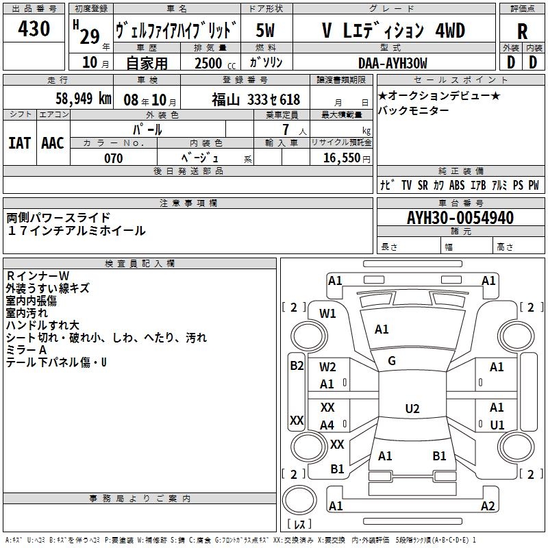 TOYOTA VELLFIRE HYBRID - лот 430