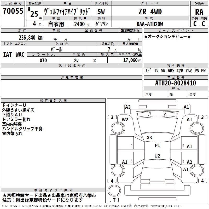 TOYOTA VELLFIRE HYBRID - лот 70055