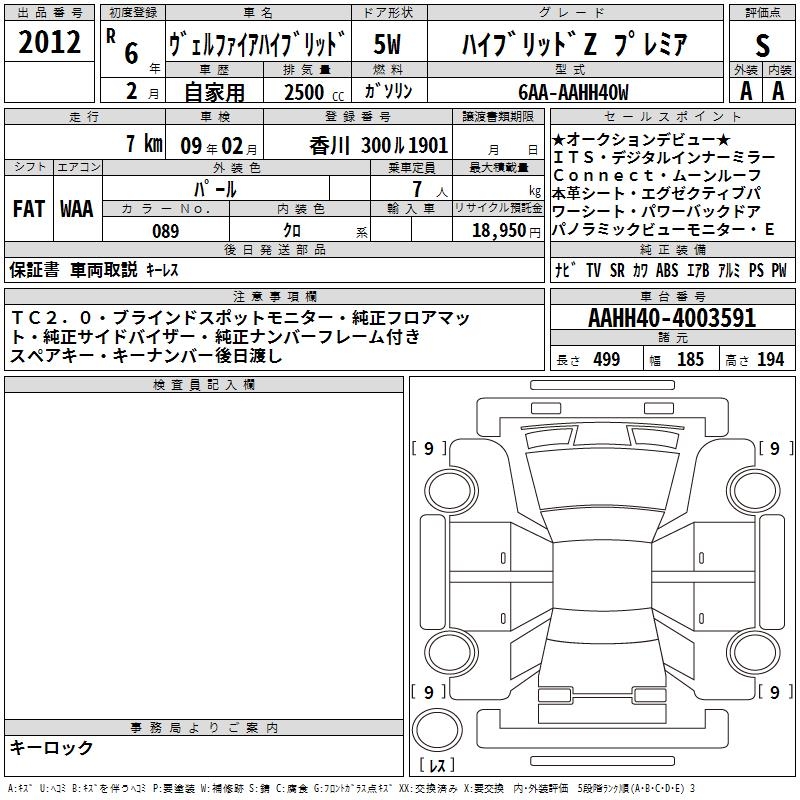 TOYOTA VELLFIRE HYBRID - лот 2012