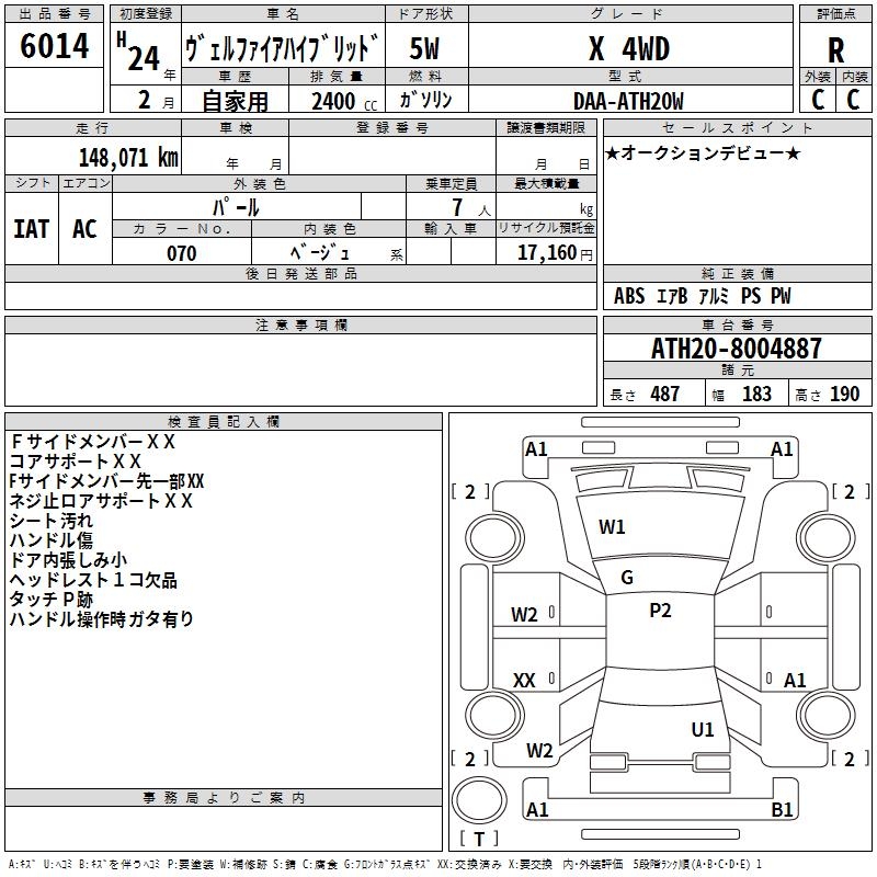 TOYOTA VELLFIRE HYBRID X 4WD - лот 6014