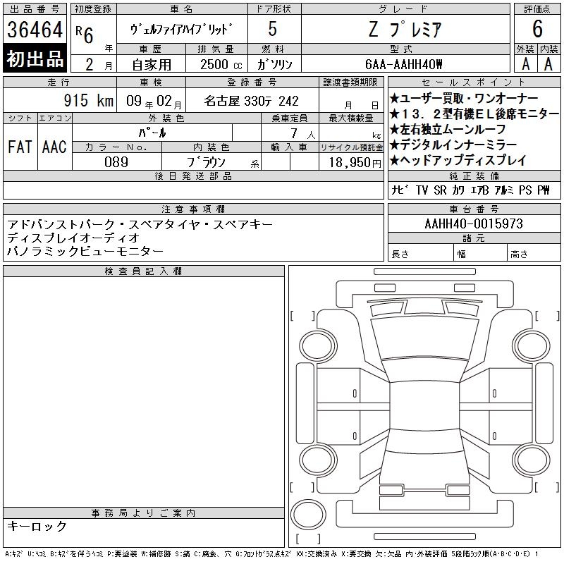 TOYOTA VELLFIRE HYBRID Z PREMIUM - лот 36464