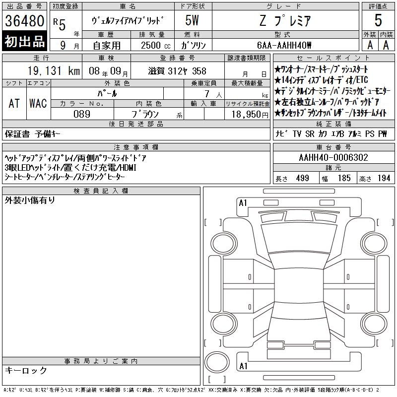 TOYOTA VELLFIRE HYBRID Z PREMIUM - лот 36480