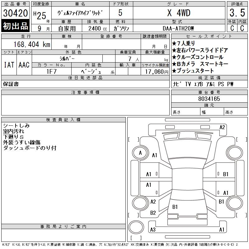 TOYOTA VELLFIRE HYBRID X 4WD - лот 30420