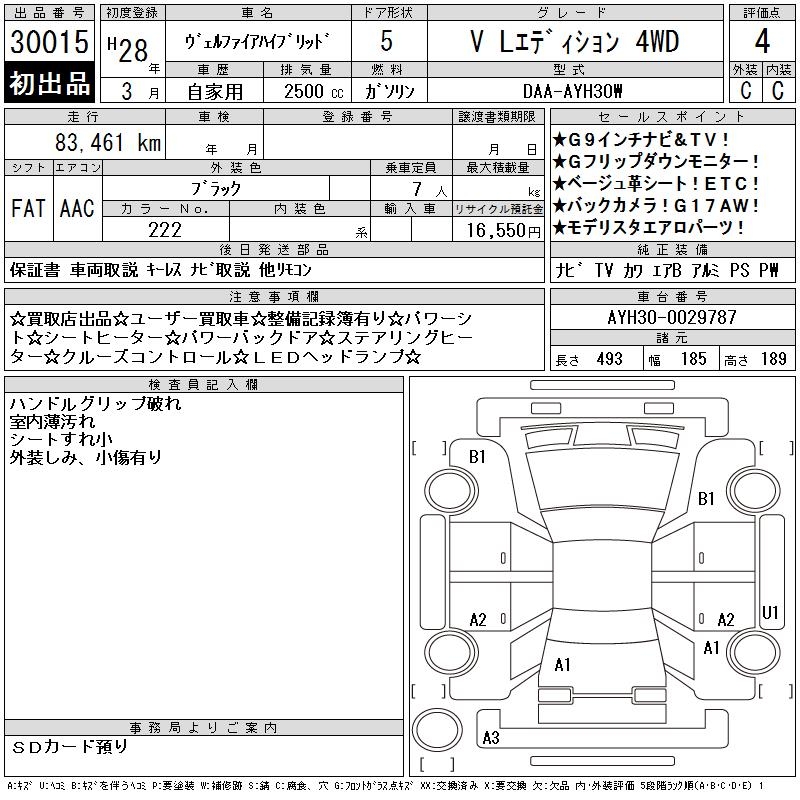 TOYOTA VELLFIRE HYBRID V L EDITION 4WD - лот 30015