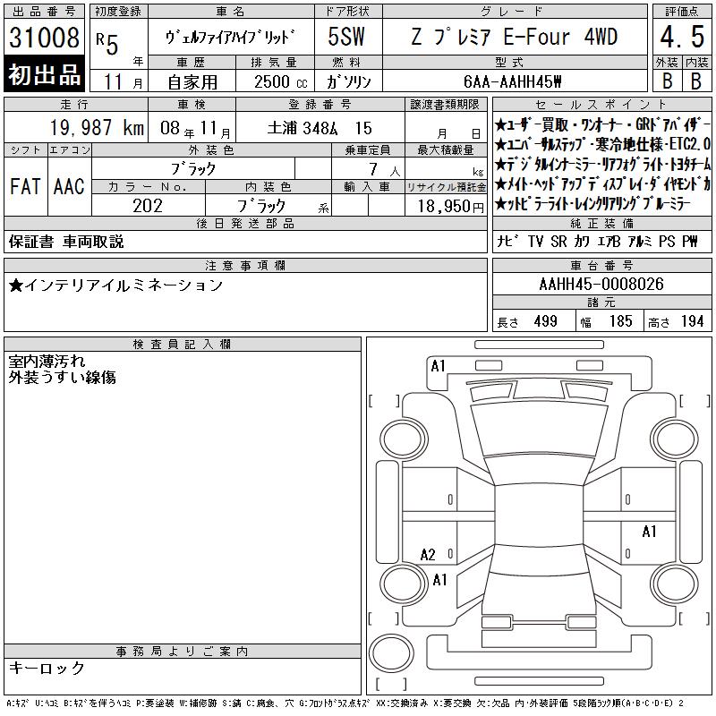 TOYOTA VELLFIRE HYBRID Z PREMIUM E-FOUR 4WD - лот 31008