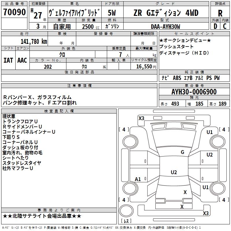 TOYOTA VELLFIRE HYBRID ZR G EDITION 4WD - лот 70090