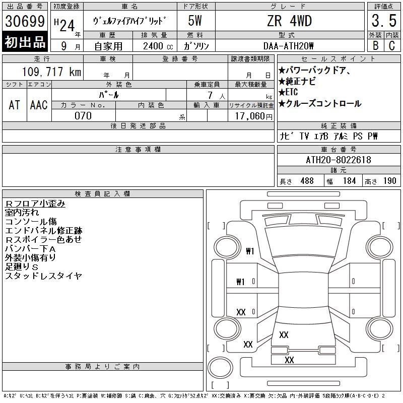 TOYOTA VELLFIRE HYBRID ZR 4WD - лот 30699