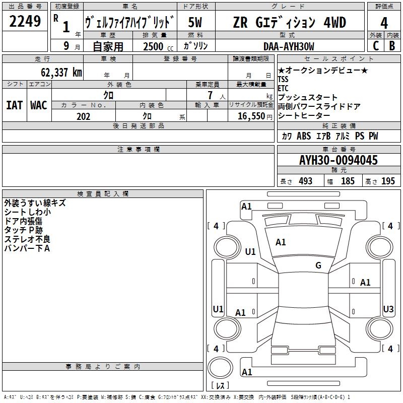 TOYOTA VELLFIRE HYBRID ZR G EDITION 4WD - лот 2249