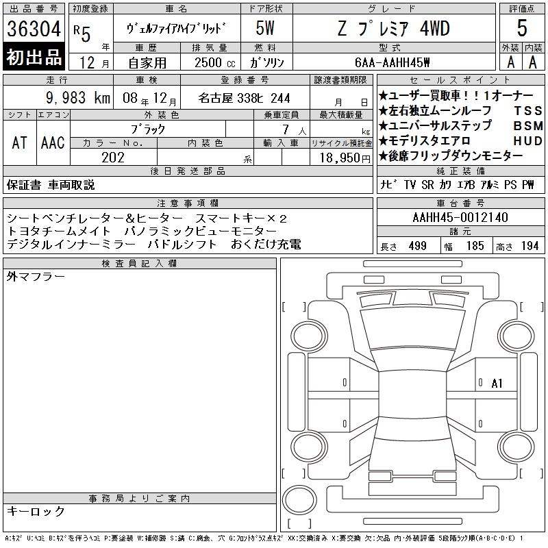 TOYOTA VELLFIRE HYBRID Z PREMIUM 4WD - лот 36304