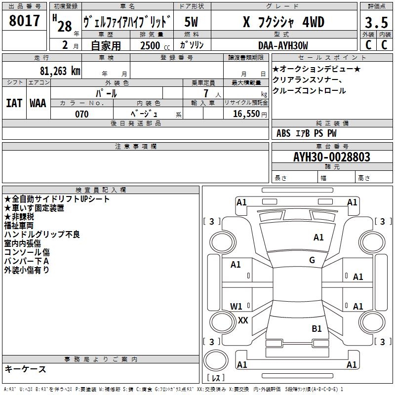 TOYOTA VELLFIRE HYBRID X WELLFARE CAR 4WD - лот 8017