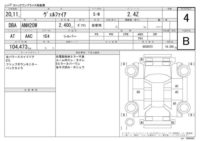 TOYOTA VELLFIRE - лот 16717