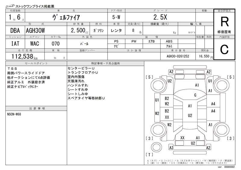 TOYOTA VELLFIRE - лот 16980