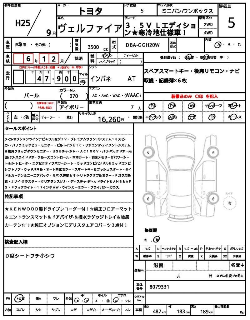 TOYOTA VELLFIRE - лот 1396