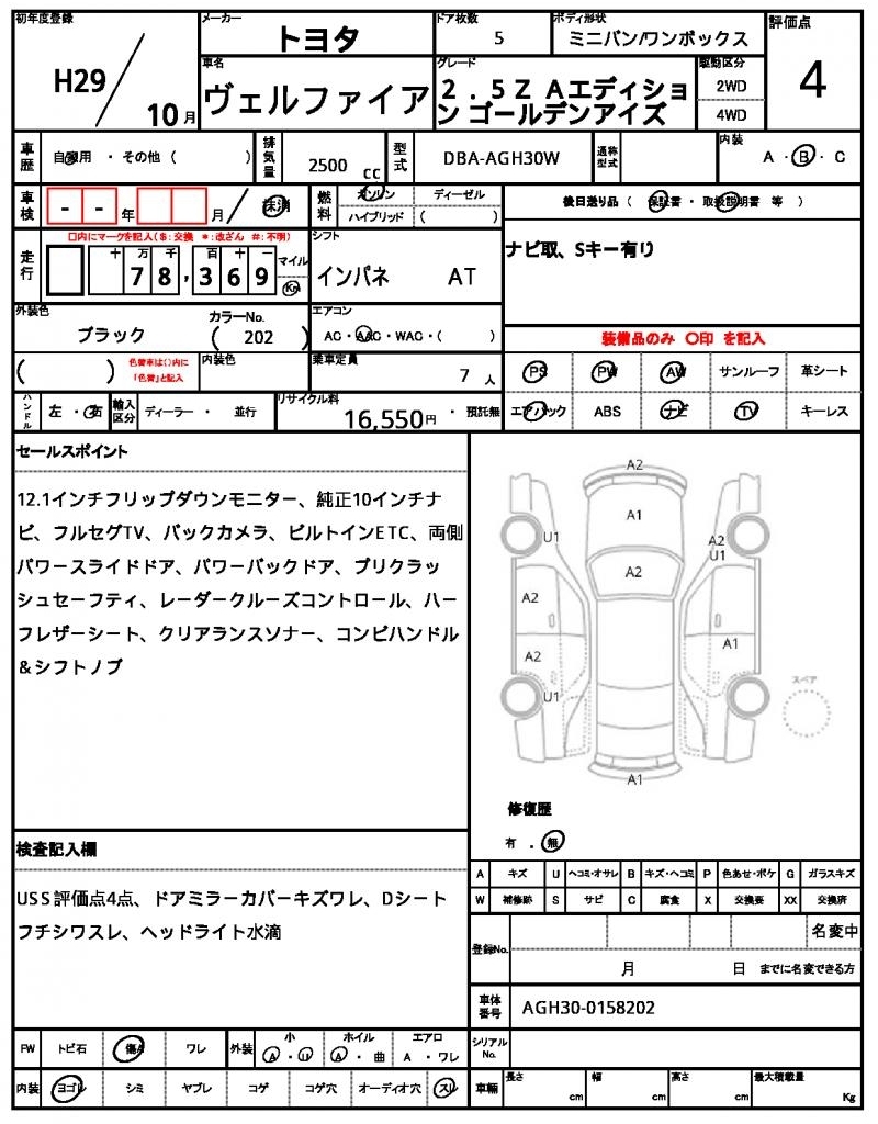 TOYOTA VELLFIRE - лот 46335